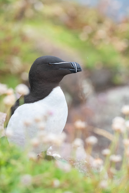 Para terminar nuestro periplo por la costa noroeste, al volver de Mull fuimos directos hacia el norte de Escocia. Allí, nos esperaba una última experiencia rodeados de aves marinas. Una mañana fuimos a la isla de Handa, conocida por albergar la mayor colonia de arao de Reino Unido (más 50.000 aves) y numerosas parejas de págalo grande y págalo parásito.